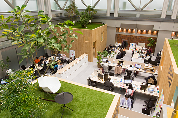 年齢や過去の経験によらず、能力の高い人間にはチャレンジングな役割を任せるのがラクスルの考え方です。社員それぞれが自由に手を挙げられるよう、オープンなコミュニケーションと、透明性の高い情報共有および意思決定を大切にしています。2015年11月にオフィスを移転しましたが、これも社員同士が活発にコミュニケーションをとれるようなオフィスレイアウトを意識。配属部署や役割に関係なく、全員が経営視点を持って業務に取り組める環境づくりを進め、自発的なキャリア形成を支援しています。